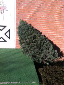 The backyard neighbor has given his tree a Jedi funeral atop a pyre made of old carpet.