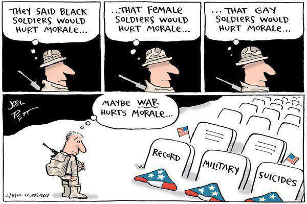 On this Memorial Day, let’s remember that the first victims of war are soldiers — and support them both home and abroad. We’re particularly failing them after they come home. Not only do we have record military suicides, but one in four of the homeless are veterans. Ask your Congressperson today why Congress isn’t working harder to take care of our veterans and servicemen.