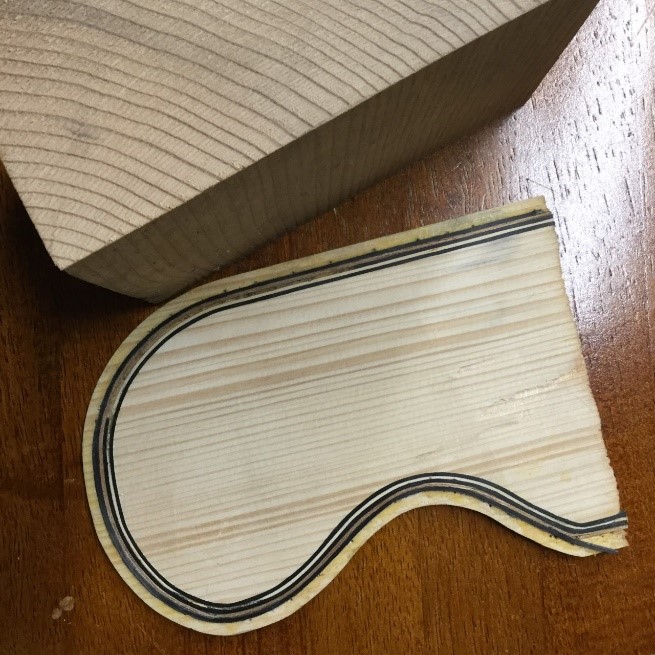 On a side note, the engineering of the guitar is a special focus of Nesvet’s research, who is working with luthier Wes R. Schroeder and the Bodleian library to reconstruct a playable version of the original guitar, which is currently housed at the Bodleian. The original is a beautifully worked guitar: a leaf veneer surrounded by purfling (test photo to the left), a time-intensive process at the time requiring patience and multiple layers of glued wood.